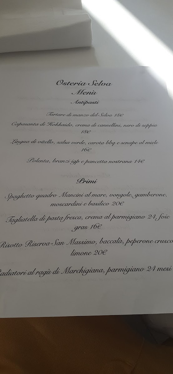 Osteria Selva offers a delightful blend of traditional Italian flavors with a few standout dishes that capture the essence of the region. Among the most notable offerings are the Polpo Alla Brace Con Fichi Rosa Caramellati, a perfectly grilled octopus paired with sweet caramelized pink figs, providing a balance of savory and sweet that is both sophisticated and satisfying. The Polenta Con Salame is a hearty classic, with the creamy polenta complementing the rich, flavorful salame for a comforting dish that warms the soul. For those craving seafood, the Gamberoni Lardellati brings large prawns wrapped in pancetta, adding a smoky richness to the natural sweetness of the seafood. The menu at Osteria Selva embraces bold flavors while maintaining a sense of rustic authenticity, ensuring that each dish, from starters to mains, is a memorable experience.